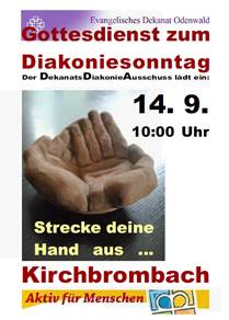 Der Dekanats-Diakonie-Ausschuss lädt herzlich ein zum Diakoniegottesdienst am 14.09.14 um 10 Uhr in die ev. Kirche in Kirchbrombach.
