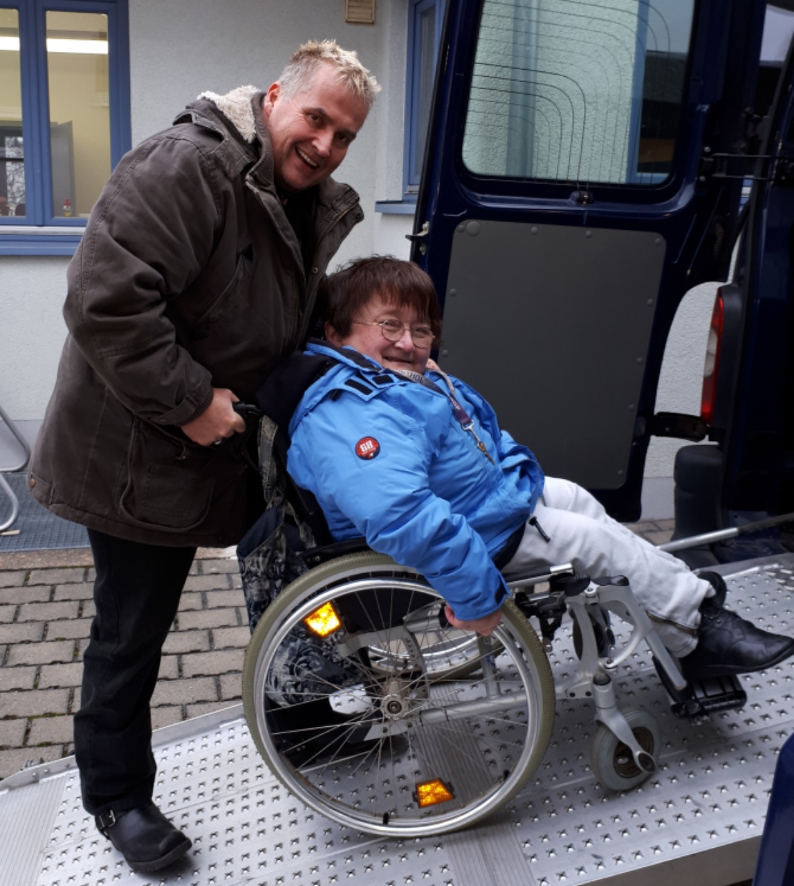 Einen neuen Mercedes Bus mit neun Sitzplätzen und einer Rollstuhlrampe probieren Lisa Ganß und Abdi Yalcinkaya vom Diakonischen Werk Odenwald aus. Der Bus wird oft gebraucht im „Ambulant Betreuten Wohnen für Körperbehinderte“. Aber auch bei Festen und Feiern, bei Selbsthilfetreffen oder Ausflügen der Psychosozialen Kontakt- und Beratungsstelle (PSKB) und bei den monatlichen Treffen des Behindertenclubs Odenwald (BCO).