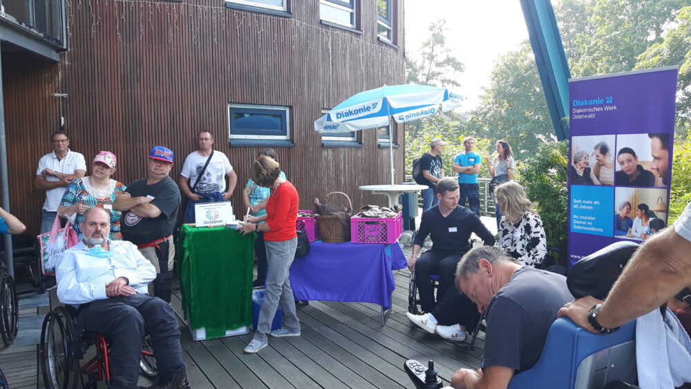 Reichelsheim, 18.09.2021: Seit vier Jahren tourt das Projekt „Ausgebremst!?“ durch die Gemeinden des Odenwaldkreises. Ersonnen hatte der Behindertenclub Odenwald das Format und motiviert regelmäßig andere Einrichtungen zum Mitmachen. Dieses Mal war das Projekt Inklusive Nachbarschaft im Gersprenztal mit Förderung durch die Glücksspirale dabei. Die Akteure haben eine Route in Reichelsheim ausgewählt, auf der am Samstag (18.9.) ca. 40 Interessierte ausprobierten, wie es sich anfühlt, im Ort mit Rollstuhl oder Rollator auf den Gehwegen unterwegs zu sein. Eine Gelegenheit für Menschen, die im Alltag sonst nicht mit dem Rollstuhl unterwegs sind, die Perspektive zu wechseln und sich in die Lage derer hineinzuversetzen, die nicht mal eben schnell einer Mülltonne oder einem Werbeaufsteller auf dem Bürgersteig ausweichen oder hohe Bordsteinkanten, Schrägen und holprige Stellen überwinden können. Auch der Bürgermeister Lopinsky und Kreistagsvorsitzender Holschuh ließen sich auf das Experiment ein und sicherten im Anschluss schnelle Verbesserungsmaßnahmen zumindest an den Stellen zu, an denen das örtliche Bauamt in Eigendirektion tätig werden kann. Im anschließenden Podiumsgespräch wurde der angestoßene Austausch gewürdigt und der Blick auch noch auf weitere Ausschlussfaktoren gelenkt, die die gleichwertige Teilhabe von Menschen mit Hör- oder Sehbehinderungen oder auch demenziellen Erkrankungen am gesellschaftlichen Leben erschweren. Fazit: Inklusion ist von allen gewünscht und der Prozess der Sensibilisierung ist ins Rollen gebracht – eine gelungene Aktion!